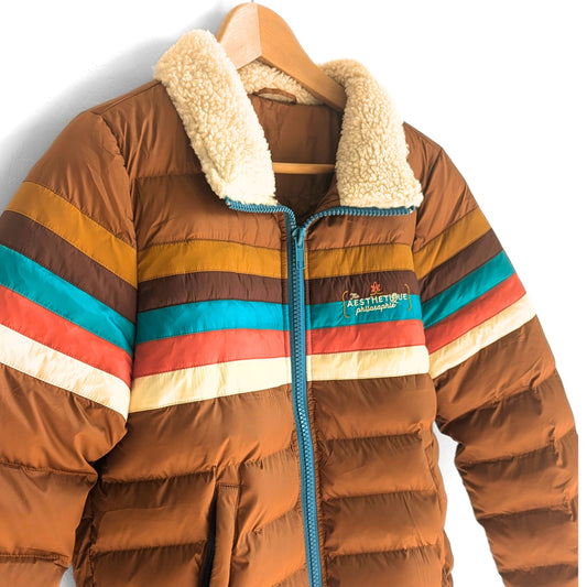 New Women's Retro 70s and 80s Style Aviator Puffer Jacket