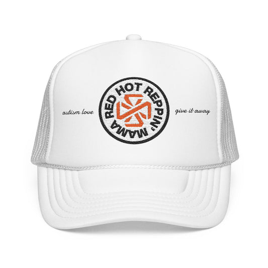 Red Hot Reppin' Mama - Autism Love, Give it Away - Unisex Embroidered Trucker Hat
