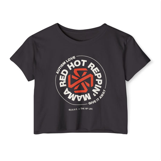 Red Hot Reppin' Mama - Autism Love, Give it Away - Women's Crop Top Tee