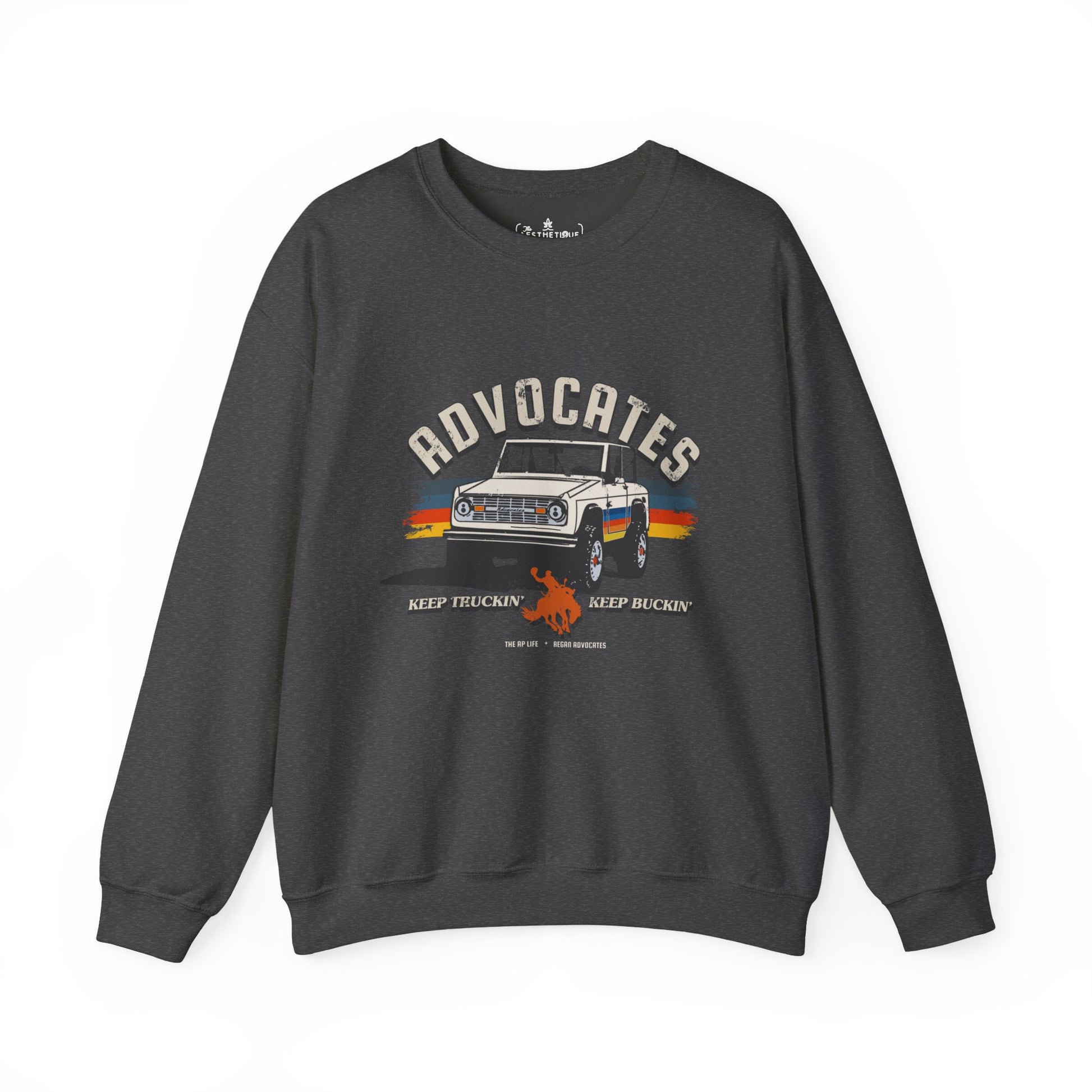 Advocates Keep Truckin', Keep Buckin' - Retro Bronco Truck - Unisex Heavy Blend™ Crewneck Sweatshirt