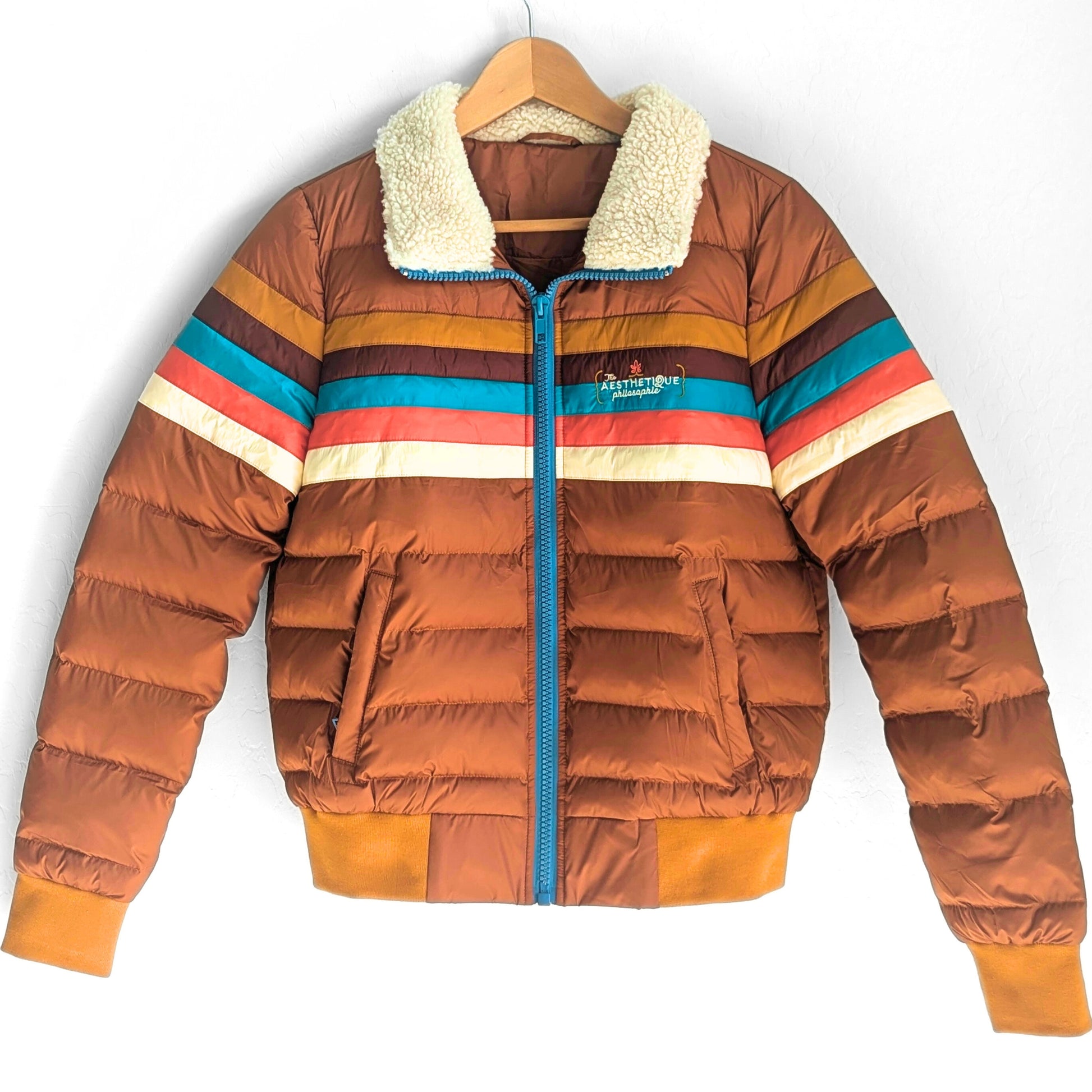 This is a revamped version of my original Aviator Puffer Jacket. Made with softer materials, heightened quality, and available in more size options, it's bound to give you all the nostalgic feels of the 1970s and early 1980s while also keeping you warm during the fall and winter months. The sherpa collar can be turned up to keep your neck warm, or folded down to maximize your aviator aesthetic in true vintage fashion.